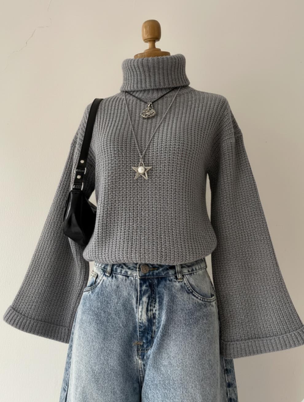 Gri Boğazlı İspanyol Kol Triko Kazak (BLN-KZKS-04)