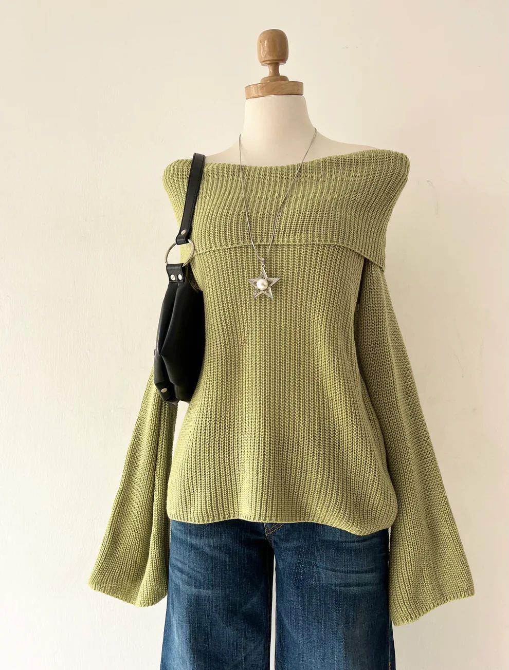 Haki Madonna Yaka İspanyol Kol Triko Kazak