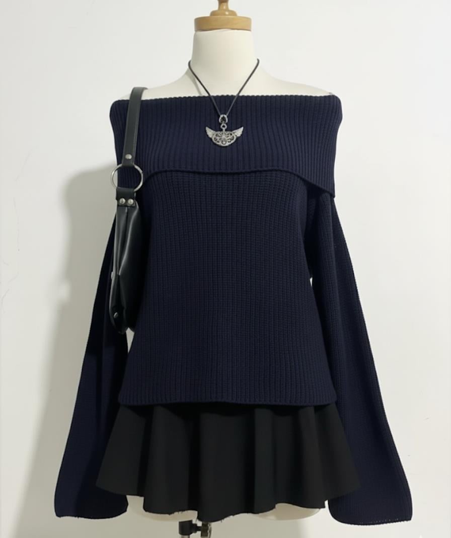 Lacivert Madonna Yaka İspanyol Kol Triko Kazak (BLN-KZKS-39)