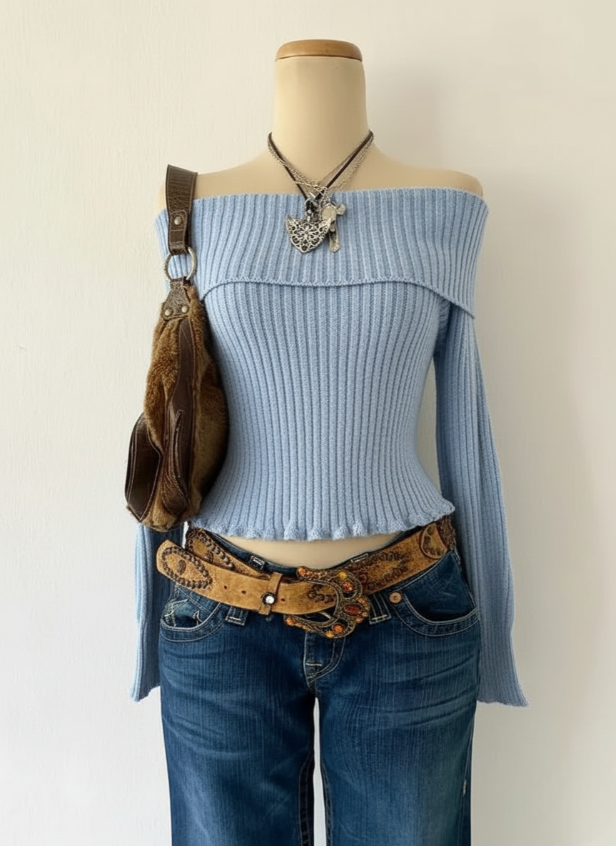 Mavi Madonna Yaka Büzgülü Kol Triko Kazak (BLN-KZKS-31)