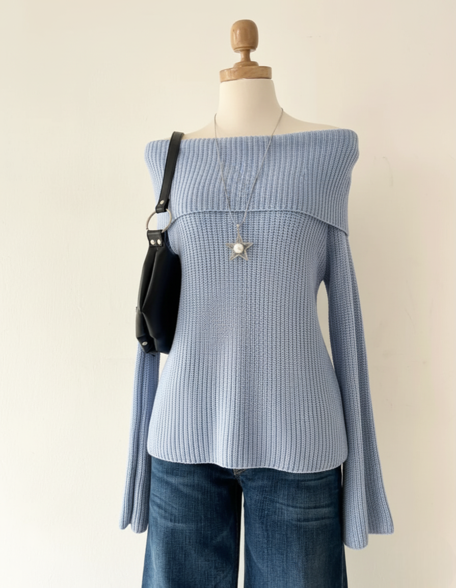 Mavi Madonna Yaka İspanyol Kol Triko Kazak (BLN-KZKS-38)