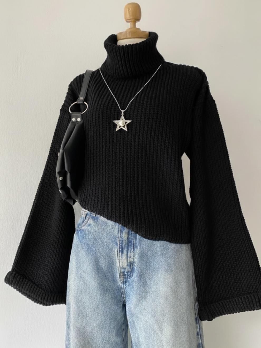 Siyah Boğazlı İspanyol Kol Triko Kazak (BLN-KZKS-01)