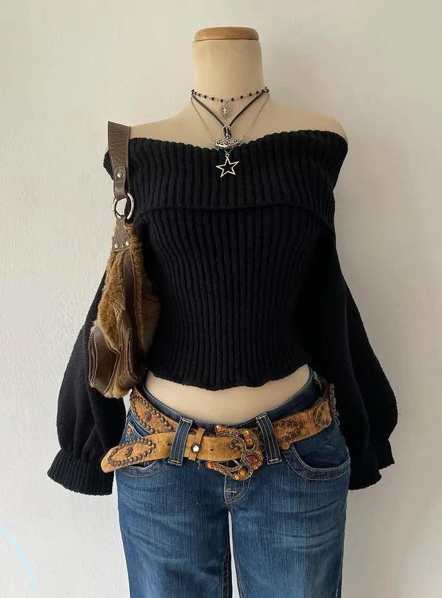 Siyah Madonna Yaka Büzgülü Kol Triko Kazak (BLN-KZKS-29)